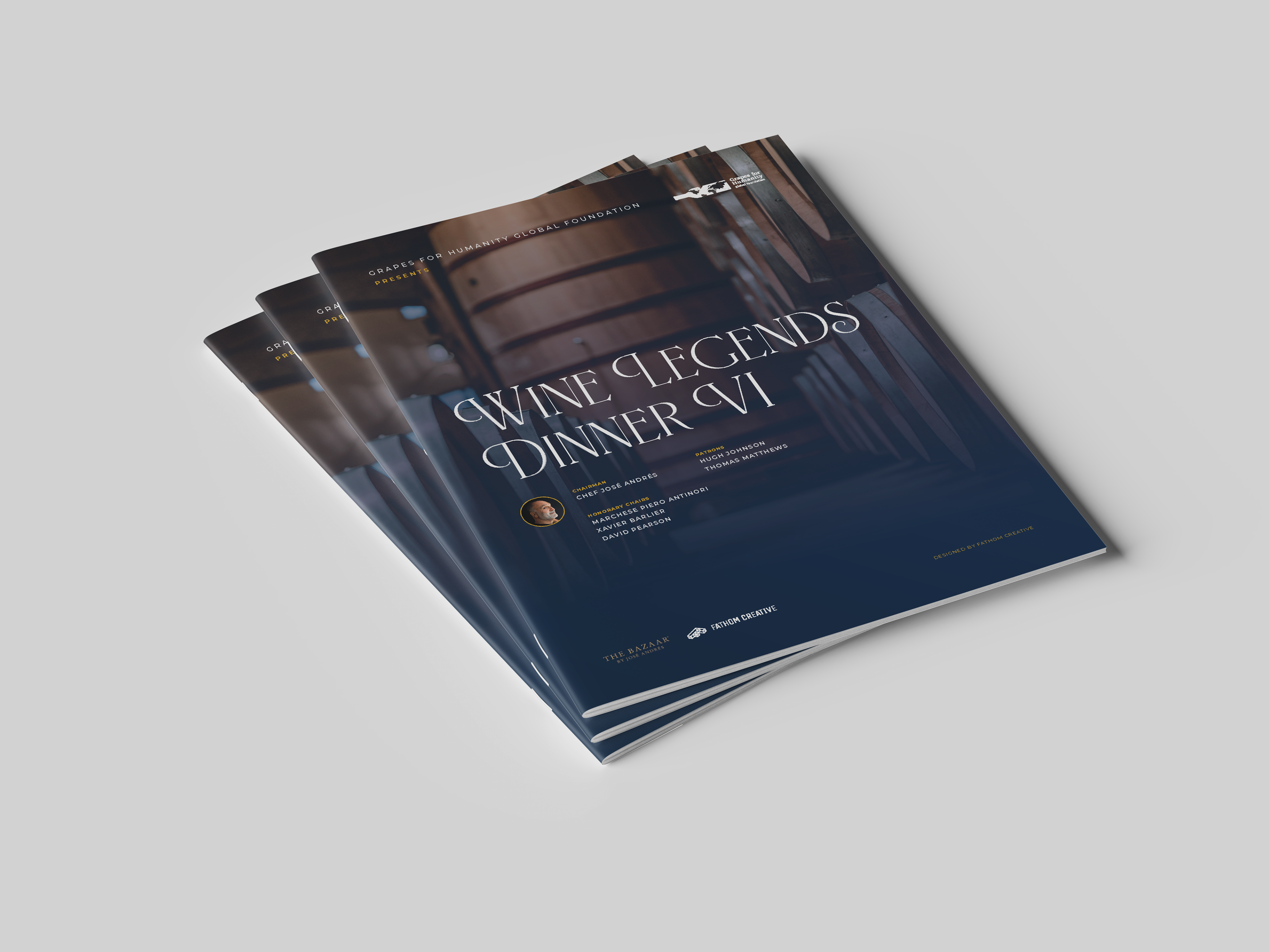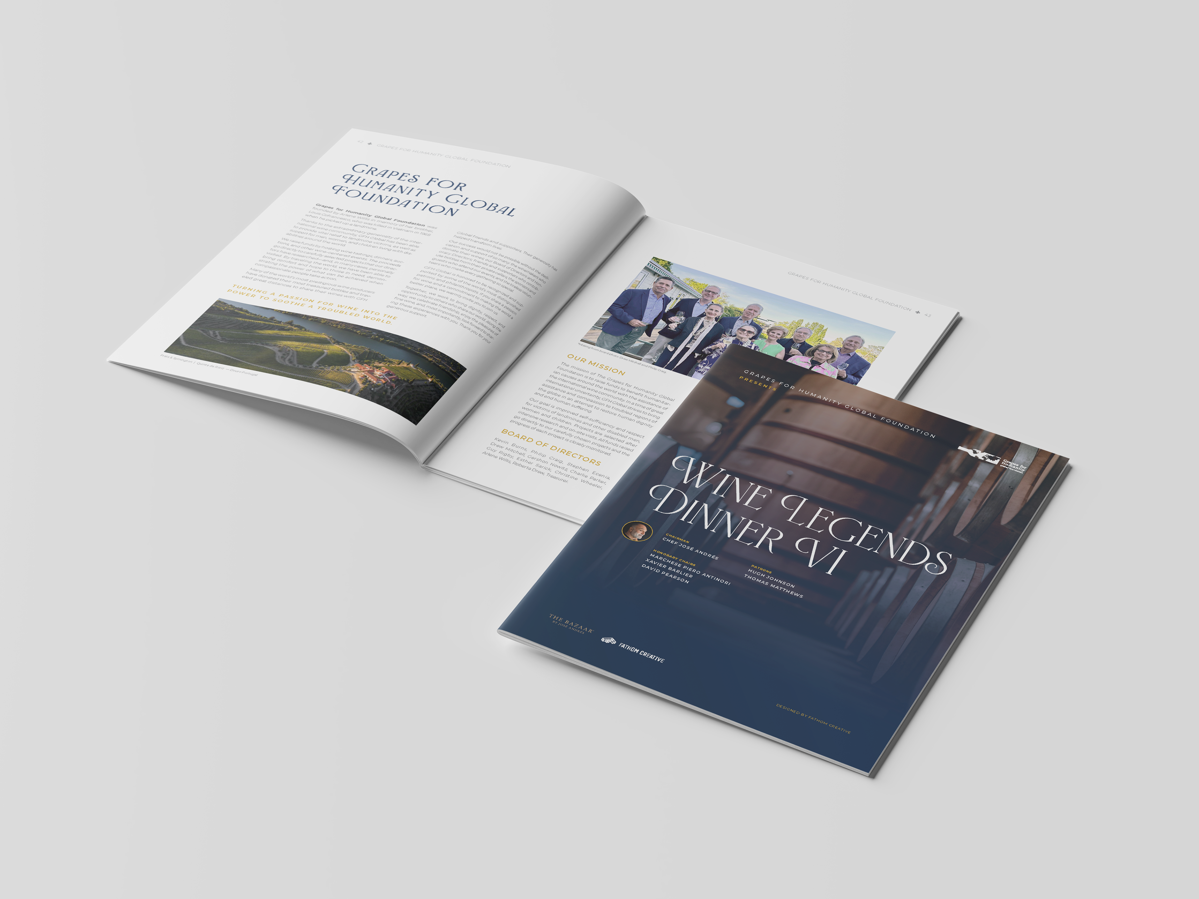 Our contributions include a dinner program highlighting the wine producers and initiatives partnered with GFH; a custom wine tasting placemat exclusively developed for the event, along with other print materials such as wine tags, ads, and invitations.