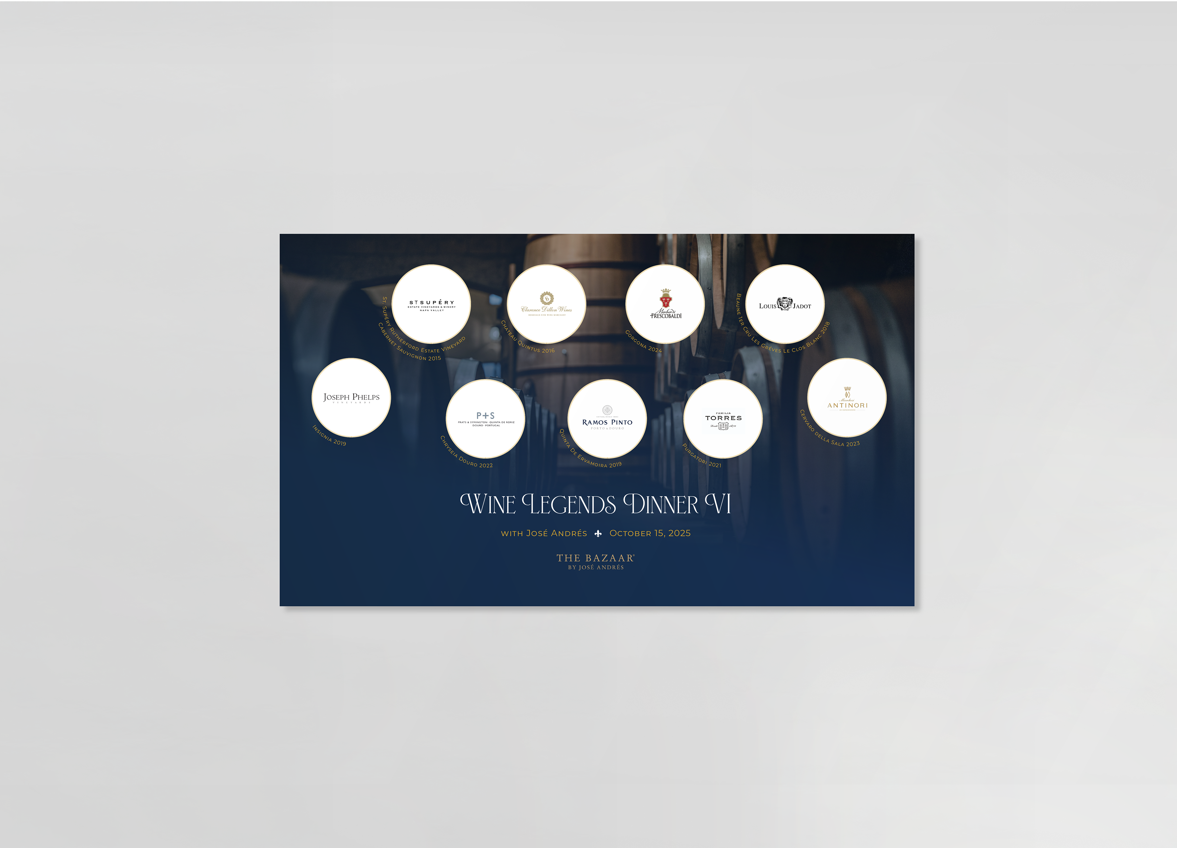 To enhance the tasting experience and facilitate guests in easily identifying each wine, we designed a custom placemat with dedicated spaces for every pour. The curated layout follows the sequence of service, allowing guests to easily recognize each wine, resulting in a more immersive and memorable experience.