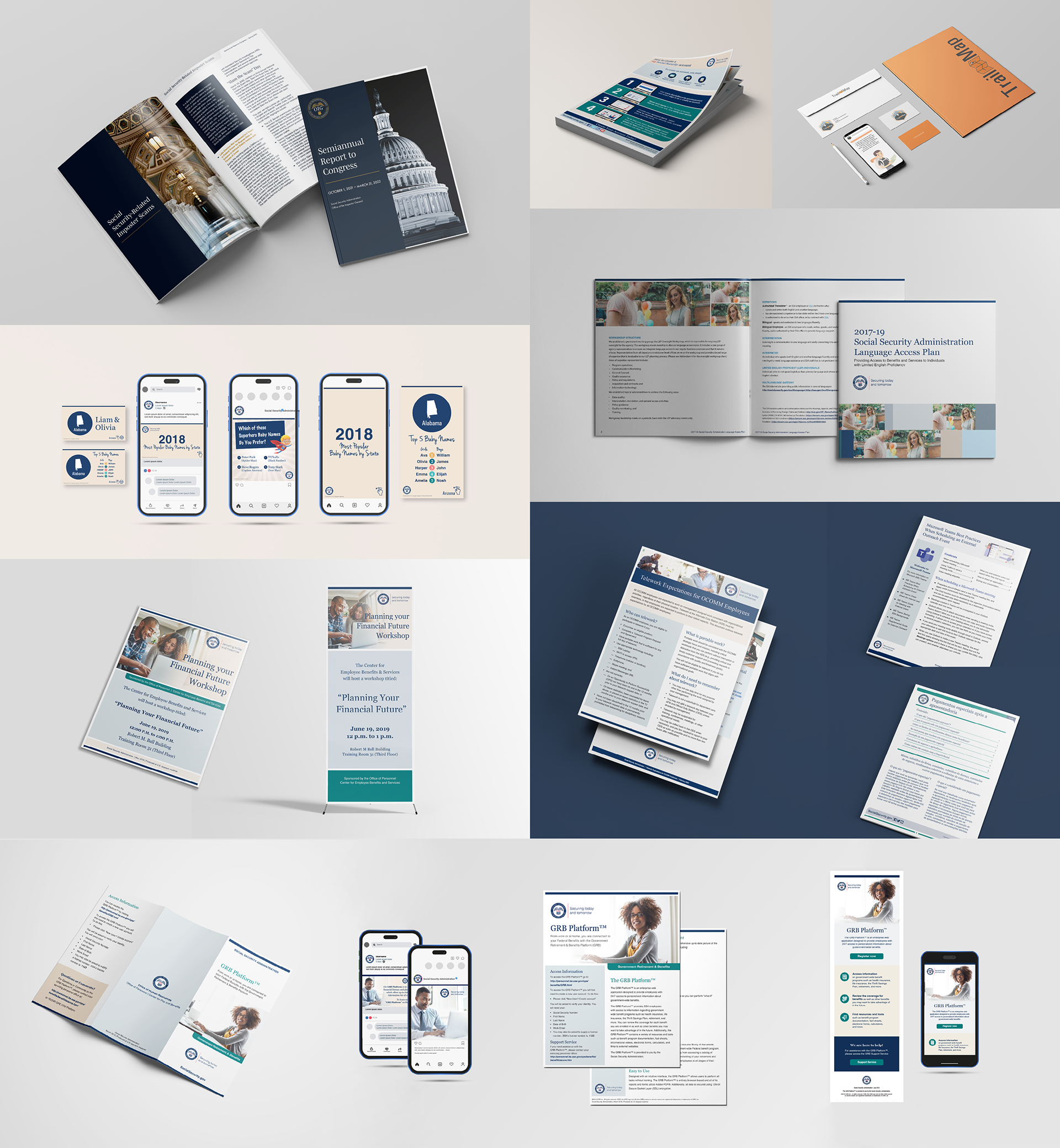As a Senior Graphic Designer at the Social Security Administration, I got to work on a wide array of communication materials such as annual reports, publications, brochures, infographics, newsletters, flyers, and posters, along with event materials, presentations, advertisements, and promotional campaign assets.